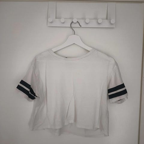 Ihana t-paita, cropp merkkinen, s koko, käytetty mutta hyvässä kunnossa, ei tahroja. Yhdestä saumasta auennut pari ommelta, koirakoti.