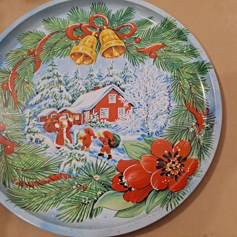 Joulutarjotin, jonkunverran kulumaa, halk. 32,5 cm.