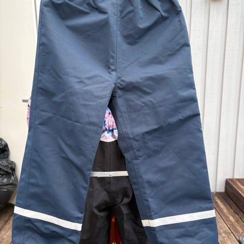 Mustat hyväkuntoiset, siistit ja ehyet Motion's ulkoiluhousut liukkaalla vuorella koossa 122 cm. Housut ovat vahvaa, hengittävää ja vedenpitävää (3000 mm) kangasta sekä niissä on tehdasommellut vahvikekankaat pepussa ja polvien yläpuolelta alas asti. Lisäksi on itse ommeltu pienet vahvikekangaspalat lahkeiden sisäsyrjille mustasta kankaasta. Housuissa on kuminauhavyötärö, jossa on kiristysmahdollisuus kuminauhalla nappisysteemillä, vetskaritaskut, heijastimia, kuminauharesorit lahkeiden suissa ja napit jalkalenksuja varten.