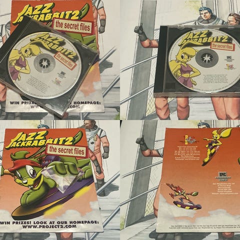 Jazz Jackrabbit 2: The Secret Files PC:lle. Hyväkuntoinen kokonaisuus. Manuaali mukana. Mukana lisäksi Jazz Jackrabbit 2 ja kaksi ohjekirjaa eri kielillä. Levyt siistissä kunnossa. Alkuperäiset ja priimakuntoiset ohjekirjat usealla eri kielellä, ensimmäinen ohjekirja päättyy sivulle 61 ja jatkuu toisessa ohjekirjassa eri kielellä sivulta 62, kuten kuuluukin, eli oikea ohjekirjapari.