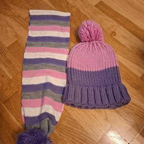 Erinomaisessa kunnossa olevat pipo ja kaulahuivi.