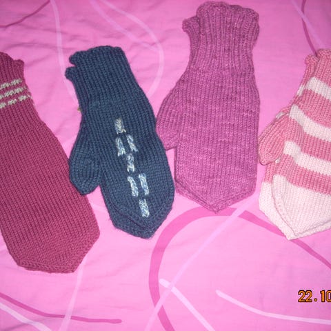 Kuvanmukaiset. Peukalonalta kärkeen 10cm pienemmät. Isommat 13cm. 7veljestä lanka.