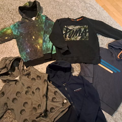 Myydään hyväkuntoisia poikien huppareita ja collegepaita. Hinta on kaikille yhteensä. Voin myydä myös erikseen.