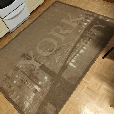 Myydään puhdas pesulassa pesetetty matto. Pituus 140cm ja leveys 62cm. Yhdestä kohtaa kude irronnut(katso kuva).