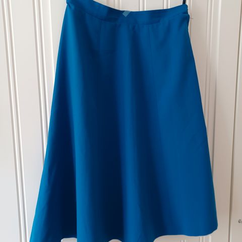 Kangas kevyt ilmava mutta tiivis sekoitekangas. Pitkä vuori. Vyötärön ympärysmitta 79cm. Käytin tätä teininä juhlassa. Kuvassa sivun vetoketjusauma on keskivaiheilla kuvaa.
