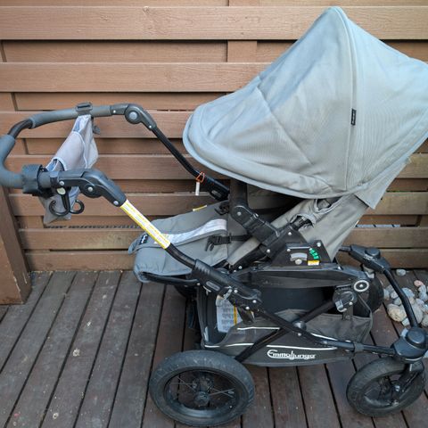 Harmaa Super Viking ratasosa ja Nitro / Ozone -runko Emmaljungan tavarakorilla. Ratasosa ja tavarakori ostettu uutena ja olleet käytössä yhdellä lapsella. Säilytetty vain sisätiloissa.