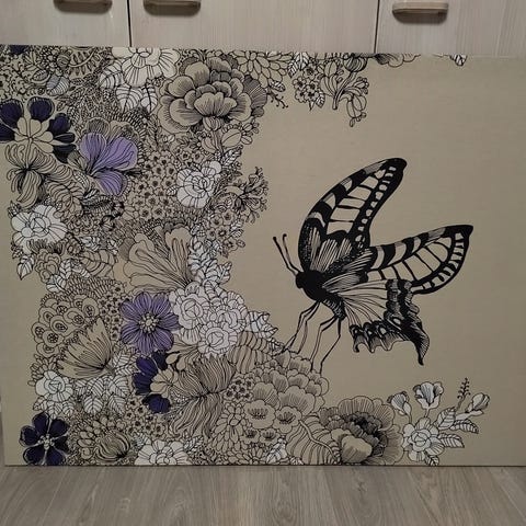 Kangas kiinnitetty taulukehystämössä, vahvat kehykset ja rautalankaripustus.