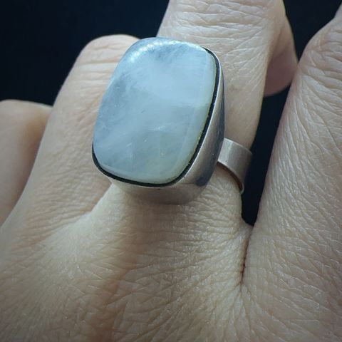 Kalevala 770 vintage hopeinen sormus, valkoinen kivi Börje Rajalin