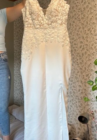 Liikkeestä uutena ostettu ja kerran käytetty Morileen pitsinen merenneitomallinen häämekko. Koko 46, mutta pienenetty omien mittojen mukaan 42/44. On siis tilaa suurentaa ja lisätä esim. olkaimet tai mitä haluaa. Käytän vaatekokoa L/XL. Häämekkoa lyhennetty vastaamaan omaa pituutta 169 cm. Häämekon kanssa käytin ballerinoja. Pieni laahus ja laahuslenkillä. Selässä napit. Saa tulla sovittamaan ja hinnasta voidaan neuvotella. Ovh 1400e + muokkaukset 70e ja käytön jälkeen pesetetty 110e.