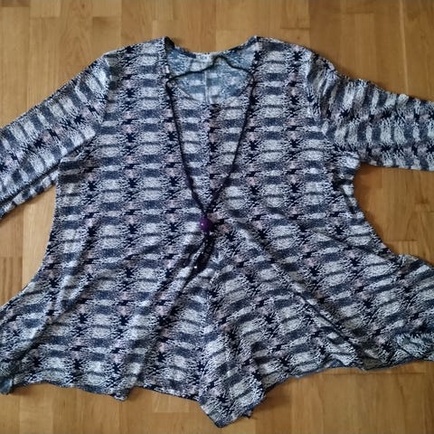 paita, jossa vinoleikkuu alhaalla, kädet eivät ole kokomittaiset, niissä pienet halkiot, löytyy toppaukset. Merkki ROMA.