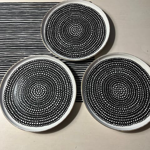 Kaksi uutta Oiva Siirtolapuutarha -lautasta/ asettia, halk. 13,5. Yhteishintaan 25 e. Toridiili/ nouto.