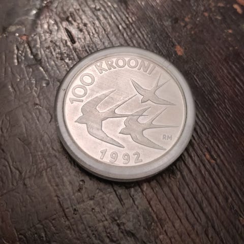 Viron 100 kroonin hopearahoja vuodelta 1992. Eesti juubeliraha