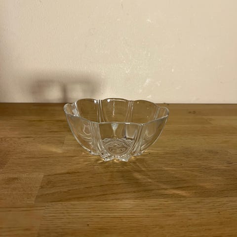 Korkeus 13 cm, lasikulhon halkaisija 14 cm.
