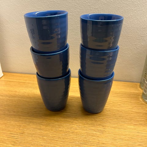 Piippuleimalla varustettu Siniraita muki. Oisko ollut kakkoslaatua, koska pinnassa lasitteen alla on nyppyä. Kupin sisällä on tumma jälki.