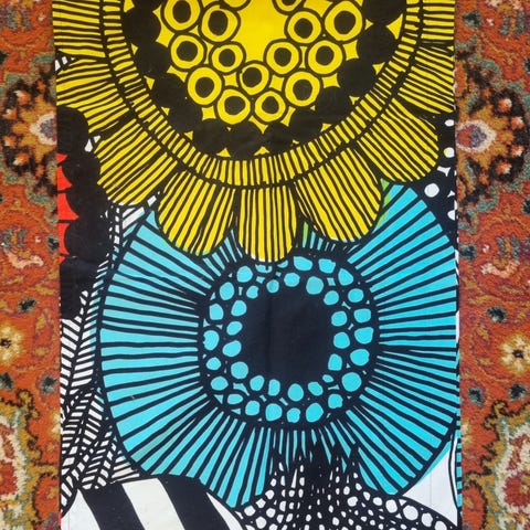 Muutamaa tahraa lukuunottamatta hyväkuntoinen vintage Marimekon Valtikka kappa, ommeltu tankokuja .