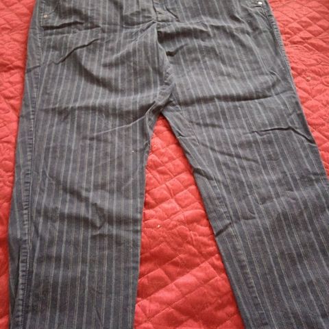 Harmaan vihertävät Lagoste miesten housut 42 . Kangas 90 puuvillaa 10 polyesteri . Kankaan pinnassa himmeä kapea raita . Napakka hyvä housukangas. Malliltaan suora leveät lahkeet. Ollut kaapissa käynyt pieneksi . Kerran pesty 40 asteessa (kaapin pölyt pois) . Vyötärö 1/2 44 cm, sivupituus vyötärönauhan alapuolelta lahkeensuuhun 97cm , haarapituus 77 cm , lahkeen leveys 25 cm.