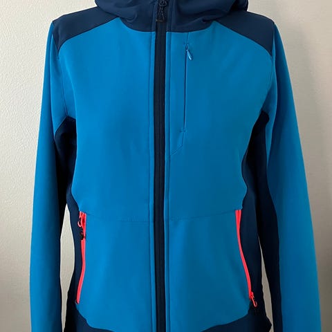 Siistikuntoinen veden- ja tuulenpitävä softshell takki, koko m. Pituus 66cm ja kai kai mitta 50cm.