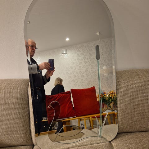 Kuva vähän huono ja vino, rajasin vanhasta kuvasta. On kuitenkin tosiaan ihan suorassa tuo maisema :) ja tasaisen pyöreä peili, ei soikio.