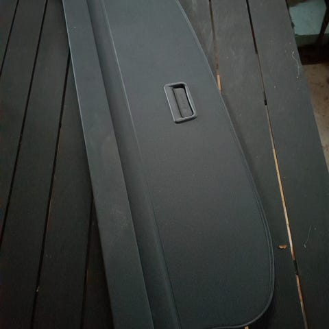 Tallinperältä tarpeettomaksi jäänyt suojaverho. Verhon alapuolella näköjää pikkusen valkeaa spraymaalinsumupisteitä muttei näy paikallaan.