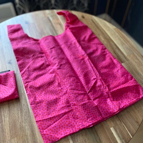 Myydään Ikean raidallinen iloisilla väreillä varustettu kestokassi vuosimallia 1999.