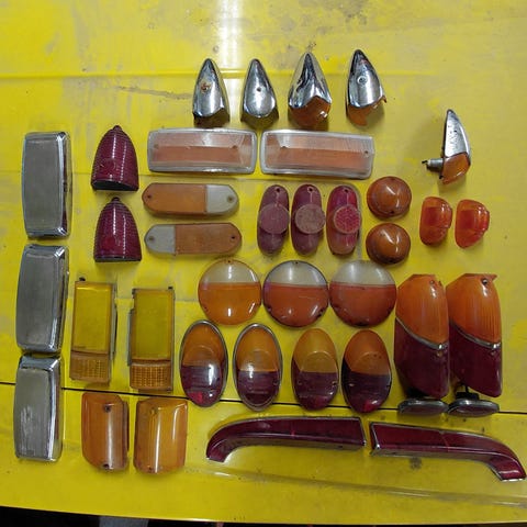 Myynnissä lisävaloteline vanhaan autoon, saattaa olla Fiat 600, Mini 1000 / Cooper?