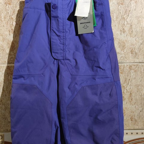 Ihana talviasu hyvässä kunnossa. Takki ja housut pitää lapseni lämpimänä kylmemmilläkin pakkasilla. Ei pehmentymää mutta vähän tummaa jälkeä edessä. En yrittänyt putsata. Hyvät ominaisuudet talveen.