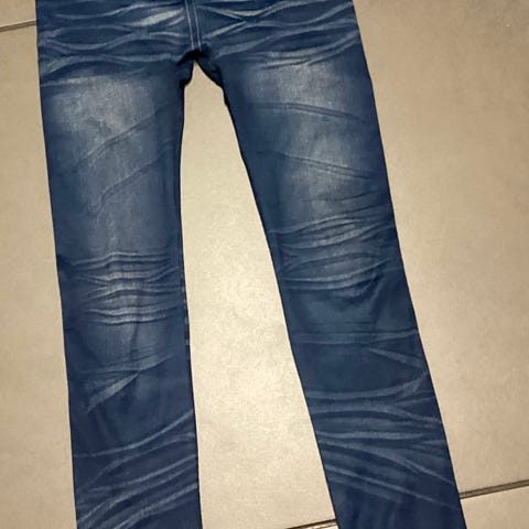 Siniset farkkulegginsit. Koko S/M. Edessä valetaskut, takana oikeat avotaskut. Materiaali 95% polyesteriä, 5% elastania. Nouto/ kulkeutuu omien menojen mukaan.