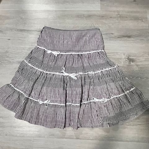 Musta-valkoinen, kerran käytetty mekko. Kiinnitys niskan taakse, alla tylli ja alushame, sivussa vetoketju.