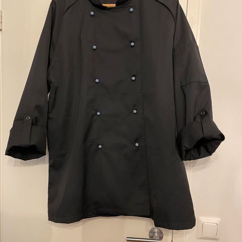 Lisäksi myynnissä muutaman päivän pidetty musta vetoketjullinen, naisten kokkitakki raglahihalla ja säädettävällä kuminauha vyötäröllä, koko: XXXL.