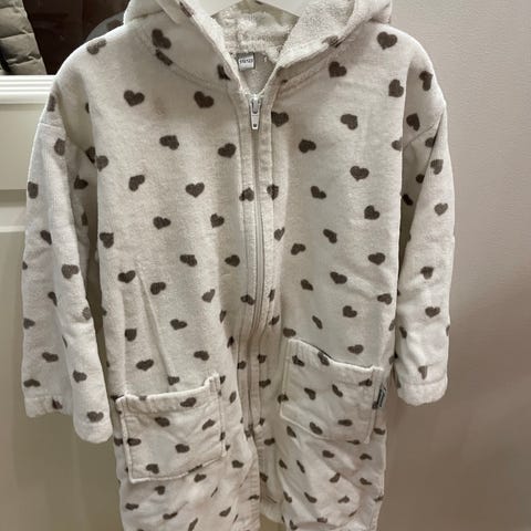 Myydään lasten Finnwear kylpytakki, koko 110/120cm. Lyhyt malli. Rinnassa koira brodeeraus