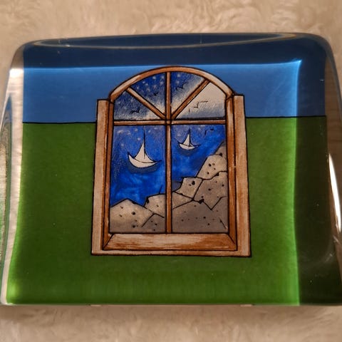 Desiglasi, design, signeerattu lasitaide, taidelasi, vintage, lasikortti, Heljä Liukko-Sudström, Iittala, lasiesine, serikuva, suojassa metsän -90 luku, joululahja, lahja