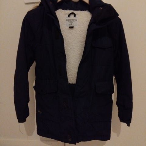 Didriksons talviparka 150cm. Unisex-malli. Muuten hyvässä kunnossa, selässä pieni vekki, mikä korjattu nylon tarrapaikalla. Tämä huomioitu hinnassa.