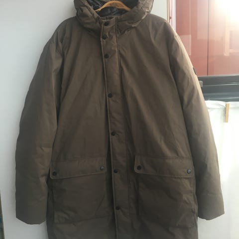 Miesten siistikuntoinen untuvatakki kokoa L