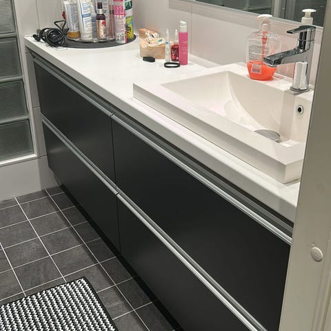 Kylpyhuoneen taso, lavuaari ja hana