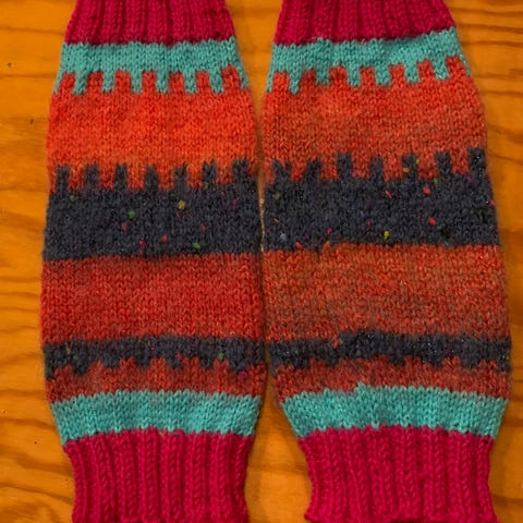 Kuvan uudet säärystimet, 7-veljestä langasta. Vaaleanharmaat vähän isommat pituus n. 40cm, hinta 18e