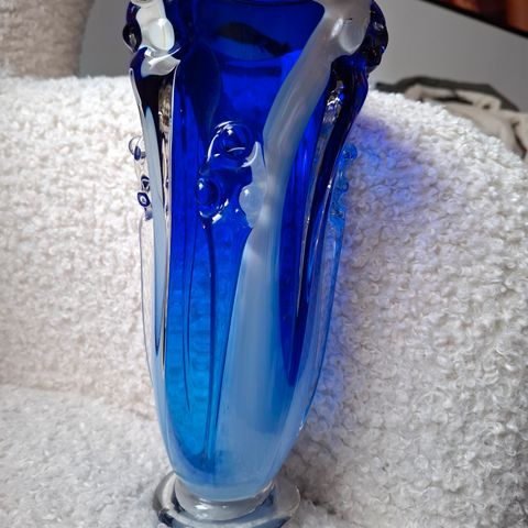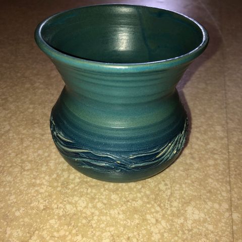 Myydään sininen maljakko. Korkeus korkeimmasta kohdasta n. 15cm. Pohjan halkaisija n. 11cm. Nouto Postipuistosta.