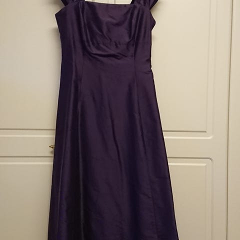 Famory-merkkinen punainen iltapuku spagettiolkaimilla sekä ohuella huivilla, koko 38. Sopii noin 160-170 cm henkilölle (helmassa 10 cm lisävaraa kun purkaa). Olkaimissa myös pidennysvaraa reilusti.