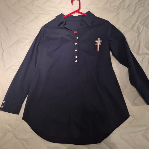 Valkea pohjainen sinisiä kukkia paidassa. Hyvässä kunnossa, paitsi ettei ole silitetty