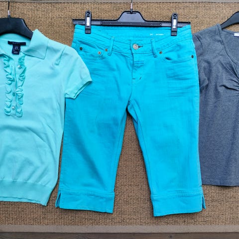 - 3 farkut (Stradivarius Mom Slim koko 34, Gina Tricot koko 34, Dr. Denim koko XS)