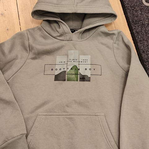 Airwalk merkkinen harmaa huppari, jossa teddy vuori miehustan ja hupun kohdalla, mutta ei hihoissa. Koko 9-10 v. Eli 140 cm. Napit.