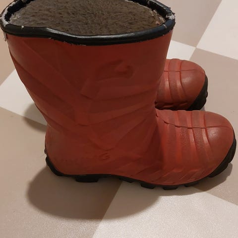 Viking pinkit thermosaappaat koko 34. Pohjallisen mitta n. 23cm. Ollut käytössä meidän kahdella tytöllä, eli yhteensä kahtena talvena. Sisäpuolen pehmuste tietysti jo jonkin verran painunut, ja pohjallisissa jo jonkin verran kulumaa (niistä kuva). Muuten hyväkuntoiset ja siistit vielä seuraavallekin.