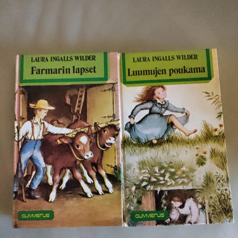Laura Ingalls Wilderin Farmarin lapset kertoo hänen miehensä Almanzon lapsuusajasta New Yorkin osavaltiossa. Joitakin jälkiä löytyy kannesta sekä etulehdestä. Toinen painos vuodelta 1979.