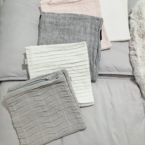 Pentikin ruskea-l.valkoiset tyynynpäälliset puuvillaa. Koko n. 45 x 45 cm. Vetoketjulla suljettava. Erittäin siistit, ei kulumaa, haalistumaa eikä tahroja. Löytyy 2 kpl, hinta yhteensä, yksittäin 10 €/kpl.