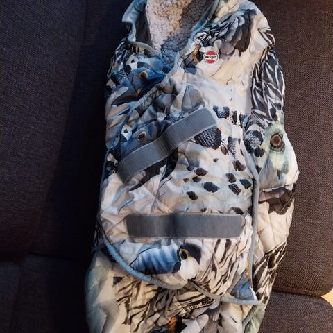 (Meille piti tulla tyttö lapsenlapsi, mutta tulikin poika ja vanhanaikaisina värien suhteen tämä jäi käyttämättä.)