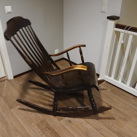 Talonpoikaisantiikkinen rullatuoli 1800-luvulta. Kotoisin Pohjanmaalta, körttityyliin väriltään musta ja hyvin yksinkertainen. Jalustassa puumerkki. Koko 14 x 35 x 30 cm. Kaunis vanha esine!