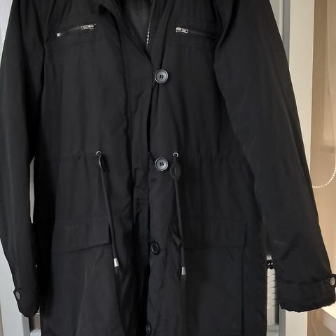 Siisti ,lämmin, musta toppatakki karvakauluksella. Postitus, ostaja maksaa kulut.