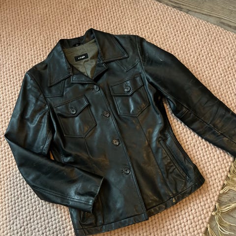 Nahkatakki, vintage, musta, koko 36