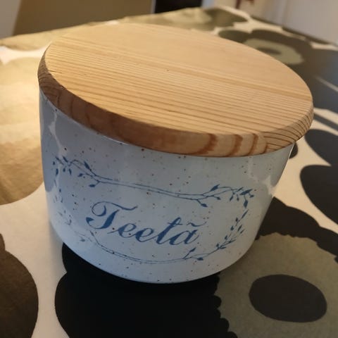 Pentikin purkit isommassa ei kantta menee vaikka kukkaruukkuna, pienessä puukansi tiivisteellä. Iso korkeus 10 cm halkaisija 12 cm. Pieni korkeus 6 cm halkaisija 6,5 cm. Ei käytönjälkiä.