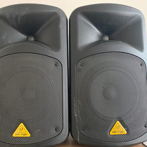 Myydään käytettyä ja käyttämättömiä musiikkilaitteita.2kpl passiivikaiutin puukotelolla FBT- D 20 150/300W. 2kpl aktiivikaiutin ALTO TX-8 280W,käytetty kolmesti. 2kpl Kaiuttimen jalat König&Meyer. 1kpl vahvistin York MP6,6kanavaa 300W (kanavasta 1 kaksi ylimmäistä nuppia katkennut mutta toimivat).Nuottivalot Könic&Meyer verkkovirralla,lähes uusi.Mikrofoni AKG D5 katkaisijalla,käyttämätön.Mikrofoni AKG BBB DFive,käyttämätön. 7kpl kaiutin ja mikrofonijohtoja,liitännät XLR/Plugi sekä vahvistimien virtajohdot. Myydään myös yksitellen.