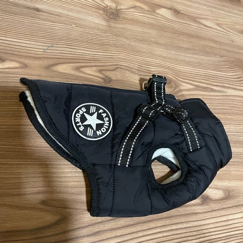 Nyt saatavilla kaksi uutta identtistä pukua. Lappeenrannassa voi sovittaakin ja postiinkin laitetaan tarvittaessa, mutta sitten lisätään lähetyskulut. Nämä ovat kokoa M, selkä 26 cm, rinta 40 cm, kaula 29 cm. Tuulta ja vettä hylkivä vetoketjullinen. Valjaat samassa joten ei tarvitse muita virityksiä, saa helposti hihnaan kiinni. Hinta on kappalehinta.